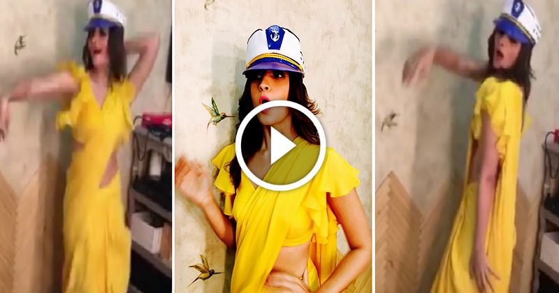 Alia, draped in a beautiful iconic yellow saree and sporting a Navy cap, looks adorable as always. She is seen showing off her moves while struggling hard to keep the hat on her head. She gave it a hilariously funny yet hot interpretation.