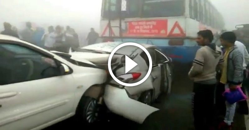 This is a horrible video in which 30 vehicles involved in a road crash near the Jewar Toll Plaza in Uttar Pradesh. The road crash happened on the Yamuna Expressway which is 165-km long joins Greater Noida to Agra. The reason for this crash was thick fog. The crash took place at around 5:30 am in the morning and the roads are invisible.