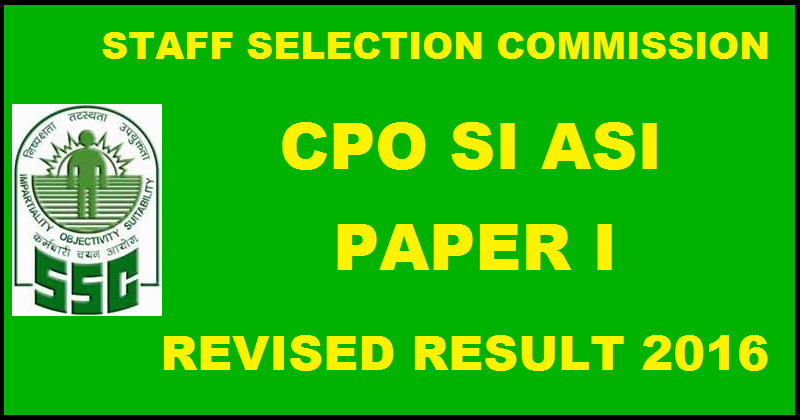 SSC CPO SI ASI Paper 1 Revised Results 2016:
