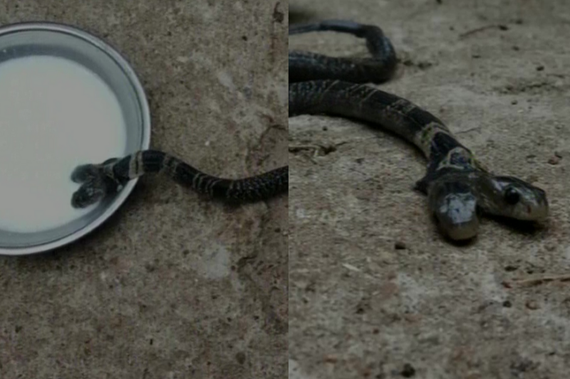 A two-headed snake was found in Midnapore City, West Bengal, and villagers refused to hand the snake to the rescuers due to mythological beliefs.