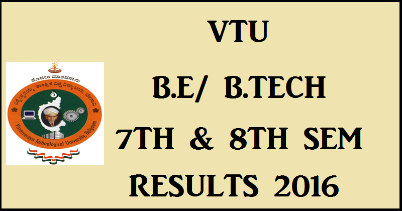 VTU B.E/ B.Tech 7th & 8th Sem Results 2016: