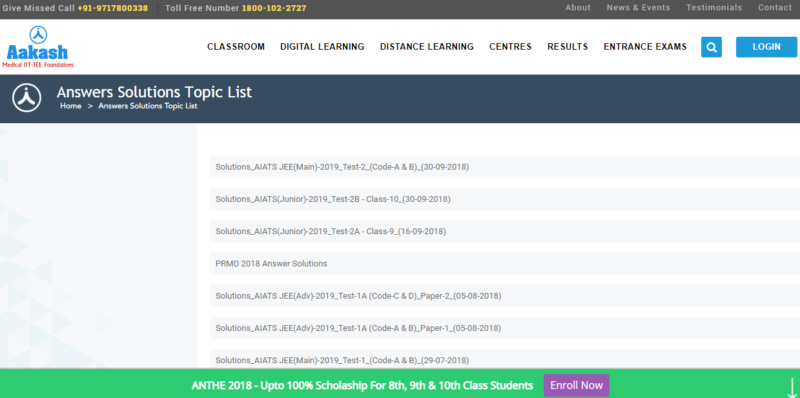 Aakash AIATS Answer Key 2018: Result, NEET & JEE Main 2019 Schedule – Finally, Aakash AIATS 30 September 2018 Official Answer is now available online on an official website on Aakash medical IIT JEE Foundations. Direct links to check Solutions AIATS JEE (Main) 2019 Test 2 Code A & B – 30 September 2018 AND solutions AIATS Junior 2019 Test 2B Class 10 30th September 2018, both are available in PDF format.