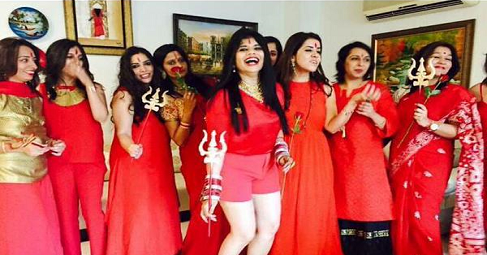 You have been listening this name on social networking media for several days, she has become most popular it is none other than Radhee Maa. Now she has became center of attraction for most of the kitty party themes. Recently, a group of ten women choose her attire and accessories as their kitty party theme. Complete with a trishul in their hands, and a tilak on their forehead, all the women in the post look like copy of Radhee Maa. The one right in front possibly went for Radhee Maa’s latest avatar.
