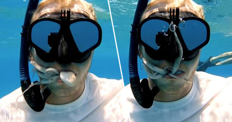 Shane Brown, a diver, was caught in an extremely weird moment when an octopus decided to go inside his mouth before thinking twice to get out again.