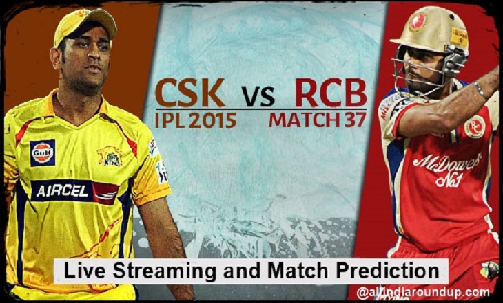 Watch Live Streaming of CSK Vs. RCB Chennai Super Kings Vs Royal Challengers Bangalore Pepsi IPL 2015 Match 37th With Cricbuzz and Cricinfo Live Score, Highlights and Updates