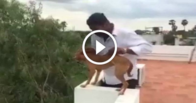 In this video, we can see a man throwing a dog from a rooftop and the dog was seen shivering in fear. The video is widely shared on social networking sites like Facebook and WhatsApp generating uproar of the man.