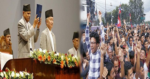 “I announce the presented constitution of Nepal, passed by the Constituent Assembly and authenticated by the chairman of the Constituent Assembly, effective from today, 20 September 2015, before the people of Nepal and We believe that the adoption of the new constitution has now opened the path for development of the country,” President Ram Baran Yadav said as he unveiled the statue in Parliament.