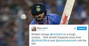 Brilliant innings @imVkohli on a tough surface… Well done!!! Expected more from @SAfridiOfficial and @realshoaibmalik with the ball.