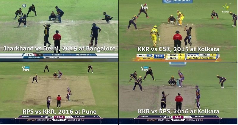 As we all know that Dhoni is a hard hitter of the ball and is capable of hitting huge sixes out of the park. But Gambhir thinks different and sets the field according to his convenience as shown in below images.