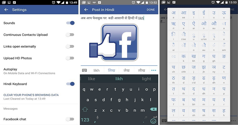 - The Facebook app takes characters typed in English and suggests similar Devanagari characters. This new option will also remember the suggestions user use the most.