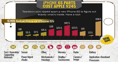 But there is a news spread that the new iPhone 6s costs $245. It turns out that iPhone 6s price is leaving the room for piles of profits. An analytic company called teardown.com who got the design with their chips has estimated and revealed the bill of materials cost of iPhone 6s. The bill of materials is set with a magical number that shows how much the components and the assembly work actually costs.